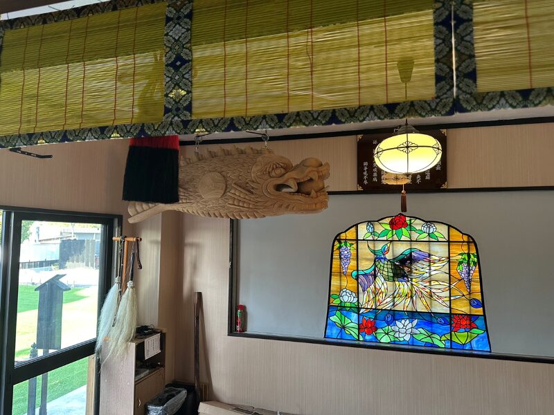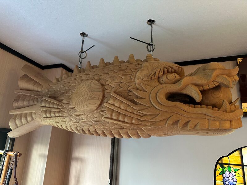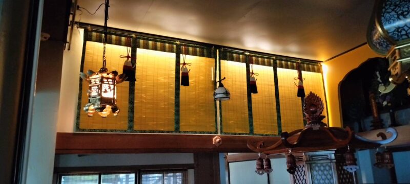 久しぶりの投稿となります。好時節ということもあり全国を視察しておりました。本日、魚鼓(魚板)が完成して本堂外単に無事設置されました。これは将来的に坐禅堂を建立するためでもあります。併せて内陣の側面には御翠簾が掛かり透かし照明による幻想的内装が出来上がりました。これから襖絵も入り越前和紙を使用した内装もお目見えします。まったく新しい本堂の内装に生まれ変わります。今年のお盆の特別法要は例年以上に趣向を凝らしたものを計画しております。みなさまには是非とも見ていただきたいものが多数新調されております。神秘的かつ幻想的な本堂へ変身します。。またほぼすべての伽藍の外壁を新デザインのものに全面的リフォームとなります。本堂回廊と階段も石畳となります。大改造計画が進行中です。