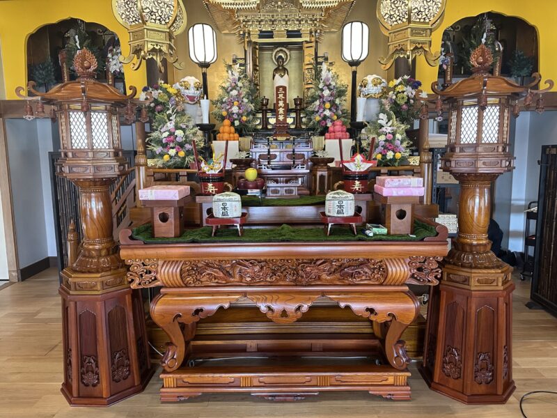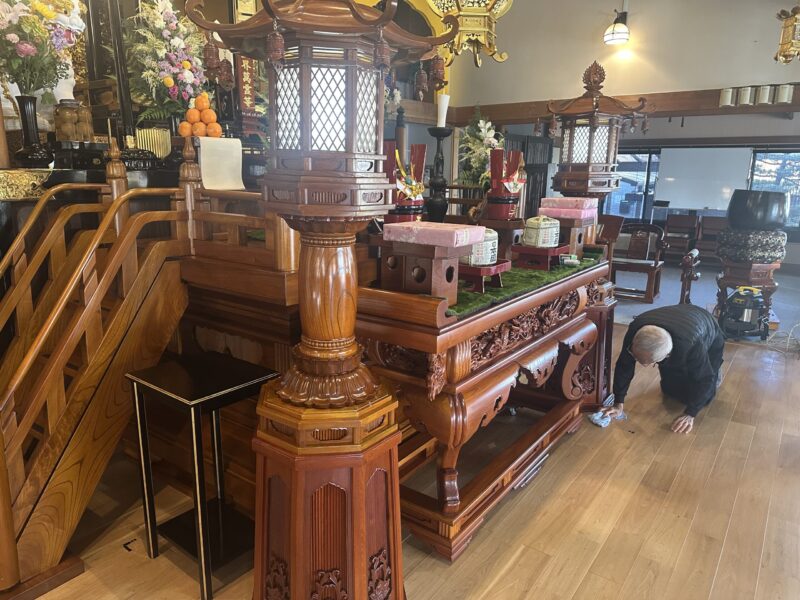 今日は本堂の大掃除をはじめ餅つきや書類の整理を職員一同でしております。内陣の須弥壇磨きや仏具の点検など日頃できないところまで隅々に配慮をして行なっております。伽藍や境内の整備の所期の目的は達成しました。今は細部に気を配り御翠簾や芸術的襖絵の製作などに傾注しております。また各所に防犯カメラやセンサーライトを設置して防犯強化にも努めております。年末年始の参拝者が年々歳々と増加しており毎年、生花が完売しております。現在は人気の樹木葬墓地が不足しております。資産価値が向上しているため墓じまいが進まず墓地不足に悩まされております。墓誌も不足をして急遽、建立しました。想像を超える勢いのため納骨堂や墓誌の設置場所がありません。やがては別院も必要になります。