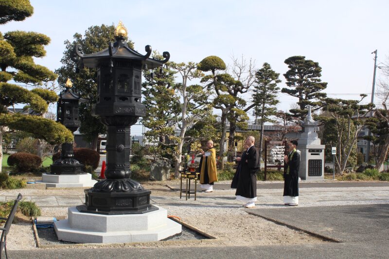 本日、ついに新熊谷霊園見性院第二墓地の開園式と同時にツインタワーこと青銅製大燈明の完成式典を行うことができました。たまたま高野山大学の教員と学生も見学のため参列をされました。新霊園は大人気の墓域内のため二、三年での完売になるかと予想しております。連日、売り出し前から見学者も絶えません。旧熊谷霊園見性院墓地も10年足らずでほぼ完売しました。最後の区画のため大切に一つ一つ丁寧に販売はしたいと考えております。また同時に式典を行なったツインタワーこと青銅製大燈明ですが半年間の工程を経て漸く建立の運びとなりました。本職人による精巧にして精緻な匠の技が随所に施されました。最高級メルセデスベンツにも匹敵する代物です。新たな当院の宝物となることでしょう。本堂の見栄えと風格が俄然と趣を異にして堂々とした重層感が醸し出されました。引き続いて石畳工事にも入ります。本堂前に京都の行燈、屋根の隅には吊り灯籠とすべてに灯りが灯されます。ライトアップも見事かと思います。夜の見性院も夜景の名所になって来ると思われます。京都祇園からも多数の伝統工芸品を調達しております。京都寺院の風格を備えた佇まいと奥ゆかしさを兼ねた雰囲気づくりをしております。将来的にはここに禅カフェや料亭もできたらと思案中です。